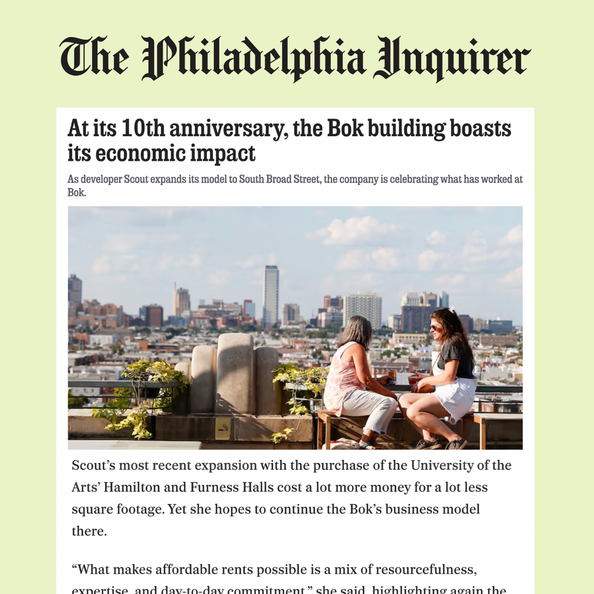The first tenants move in as Scout begins to breathe life into a historic space where art, culture, and creativity can continue to grow in Philadelphia. 2026 anticipates mass citywide celebrations for the United States’ Sestercentennial (250th Anniversary).