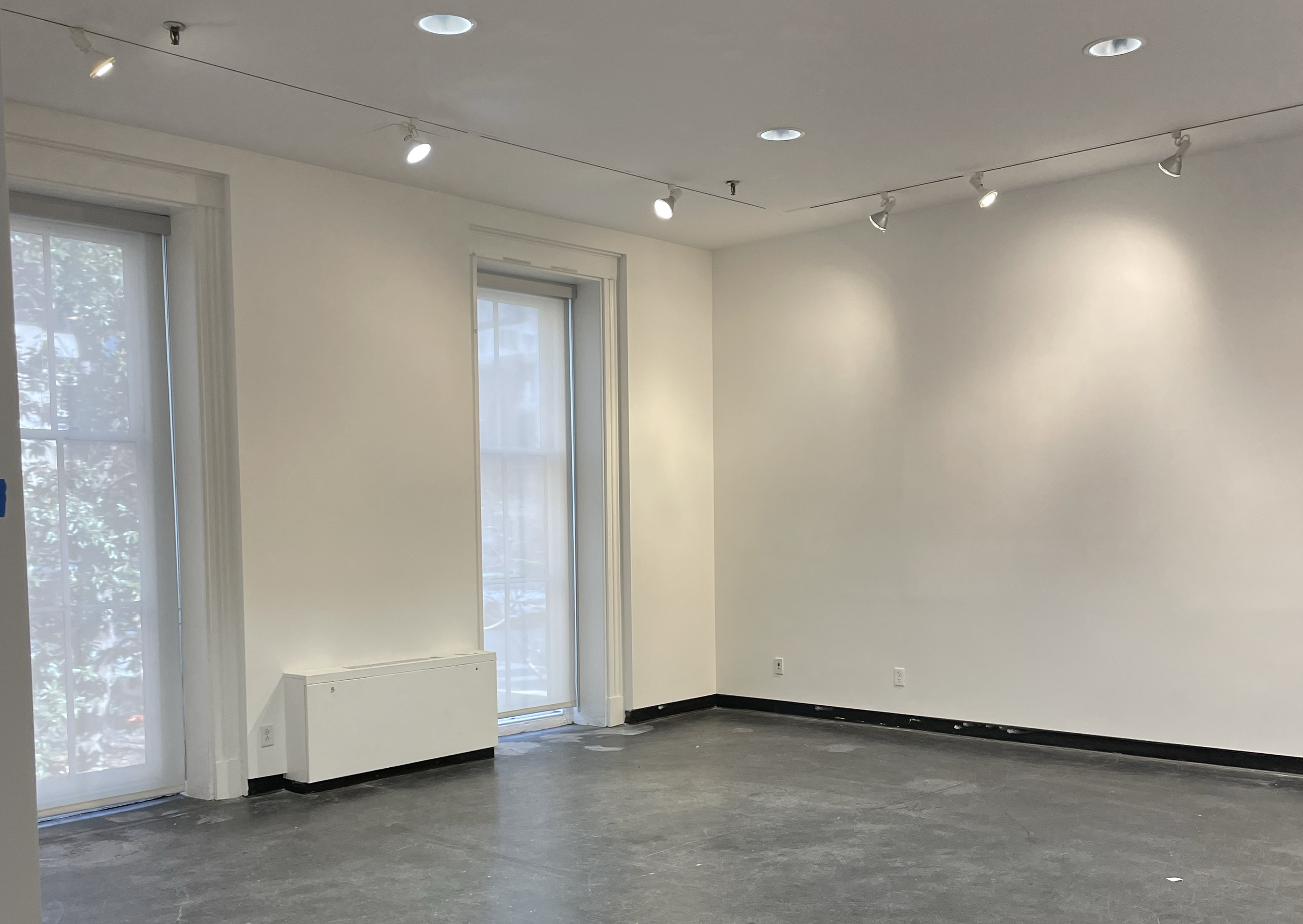 A gallery space located next to The Meeting Room and the Broad Street entry, featuring three expansive blank walls and windows along the north side for consistent natural light. Its open layout and ready-to-hang walls make it ideal for exhibitions, artist showcases, pop-up shops, cocktail hours, talks, and other small-scale gatherings.